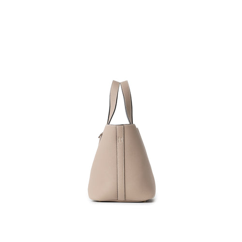- 軽量で心地よいシュリンクレザーの風合いと、トレンドに左右されないシンプルなフォルムが特徴的なハンドバッグ。