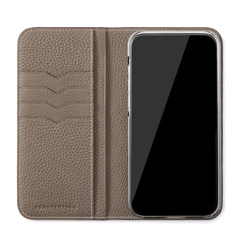 SKU: BODC14PL-ET - Specifications: Genuine leather notebook type smartphone case, card pocket (horizontal x 4, vertical x 2)