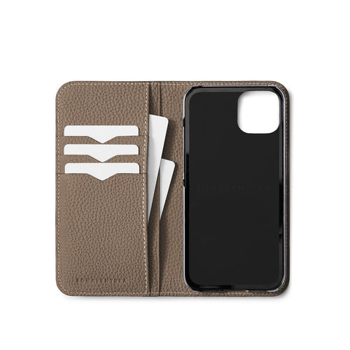 SKU: BODTR15-ET - Specifications: Genuine leather notebook type smartphone case, card pocket (horizontal x 3, vertical x 2)
