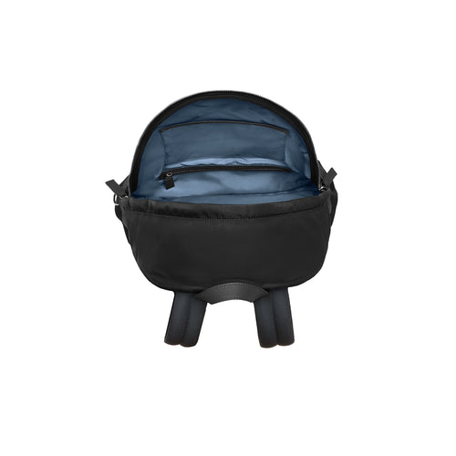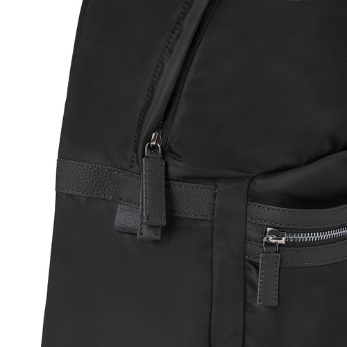 - イタリア製の高密度軽量ナイロンを使用し、しなやかで上品な光沢と高級感を演出するジップ開閉式のバックパック。