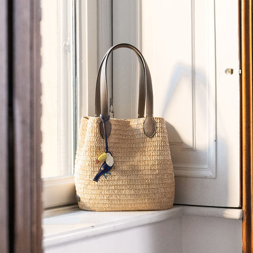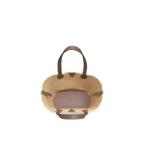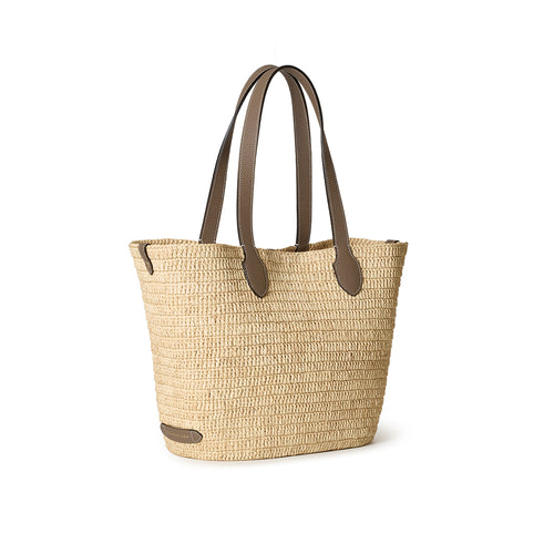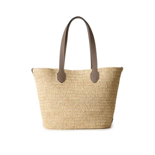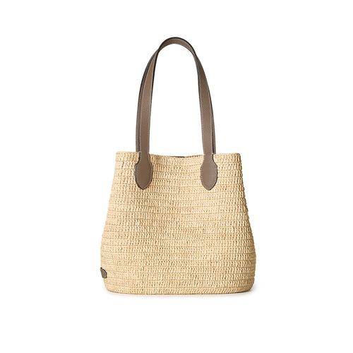- 軽やかさと季節の気配を纏う、ラフィア素材を使用したトートバッグ。
