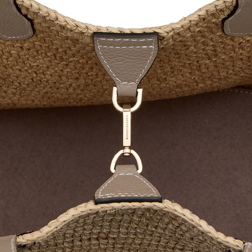 - 細やかに編み込まれたラフィアが、カジュアルさの中にも上品さを感じさせ、きれいめな装いにも自然に馴染みます。