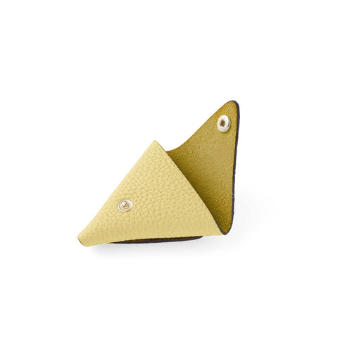 - 三角形のフォルムが印象的な片手にすっぽりと収まる小銭入れ。
