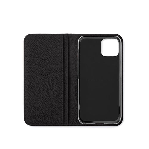 SKU: BODT14-BK - 仕様:本革手帳型スマホケース、カードポケット(横×3、縦×2)