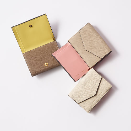 - 必要最低限の収納を叶える、機能的で計算されたデザインのコンパクトな三つ折り財布。