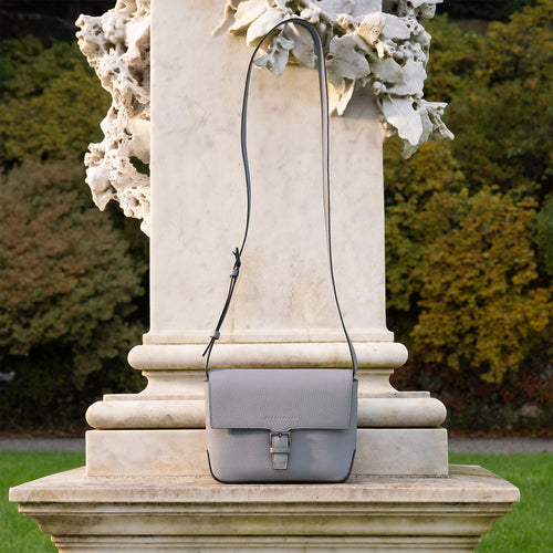 - 上質なシュリンクレザーを贅沢に使用した、バックルディテールがアクセントとして映えるクロスボディバッグ。