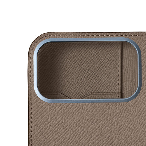 - 美しいレザーを引き立てるミニマルなデザインのiPhoneケース。