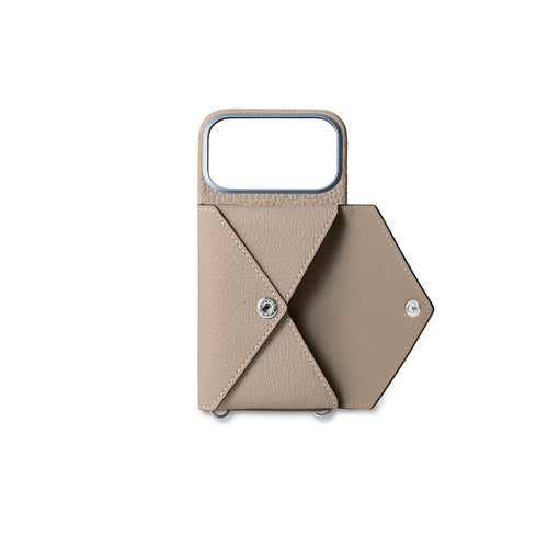 - 別売りのエンベロープポーチ、ミラーポーチ専用のスナップ付き背面型iPhoneケース。