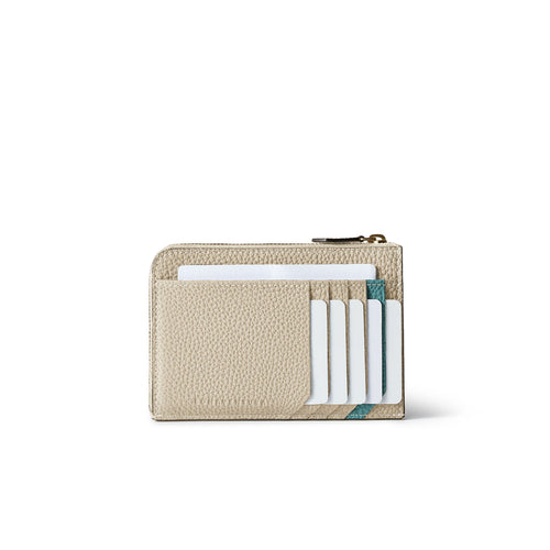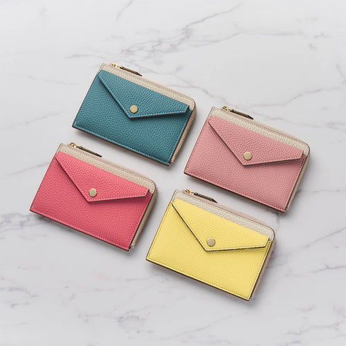 - 小銭や鍵も収納でき、マチ付きのL字ジップで日本紙幣を二つ折りで収納可能。膨らみにくく、スマートな使い心地を実現。