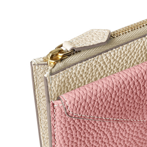 - 小銭や鍵も収納でき、マチ付きのL字ジップで日本紙幣を二つ折りで収納可能。膨らみにくく、スマートな使い心地を実現。