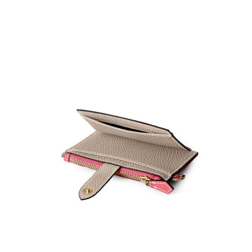 รหัสสินค้า: BWAT55-APGG 幅(cm) 高さ(cm) マチ(cm) 重量(g) 12.3 8 1 53 - 素材:外側 シュリンクレザー、内側(スナップ内側)シュリンクレザー、(ジップ内側)スムースレザー